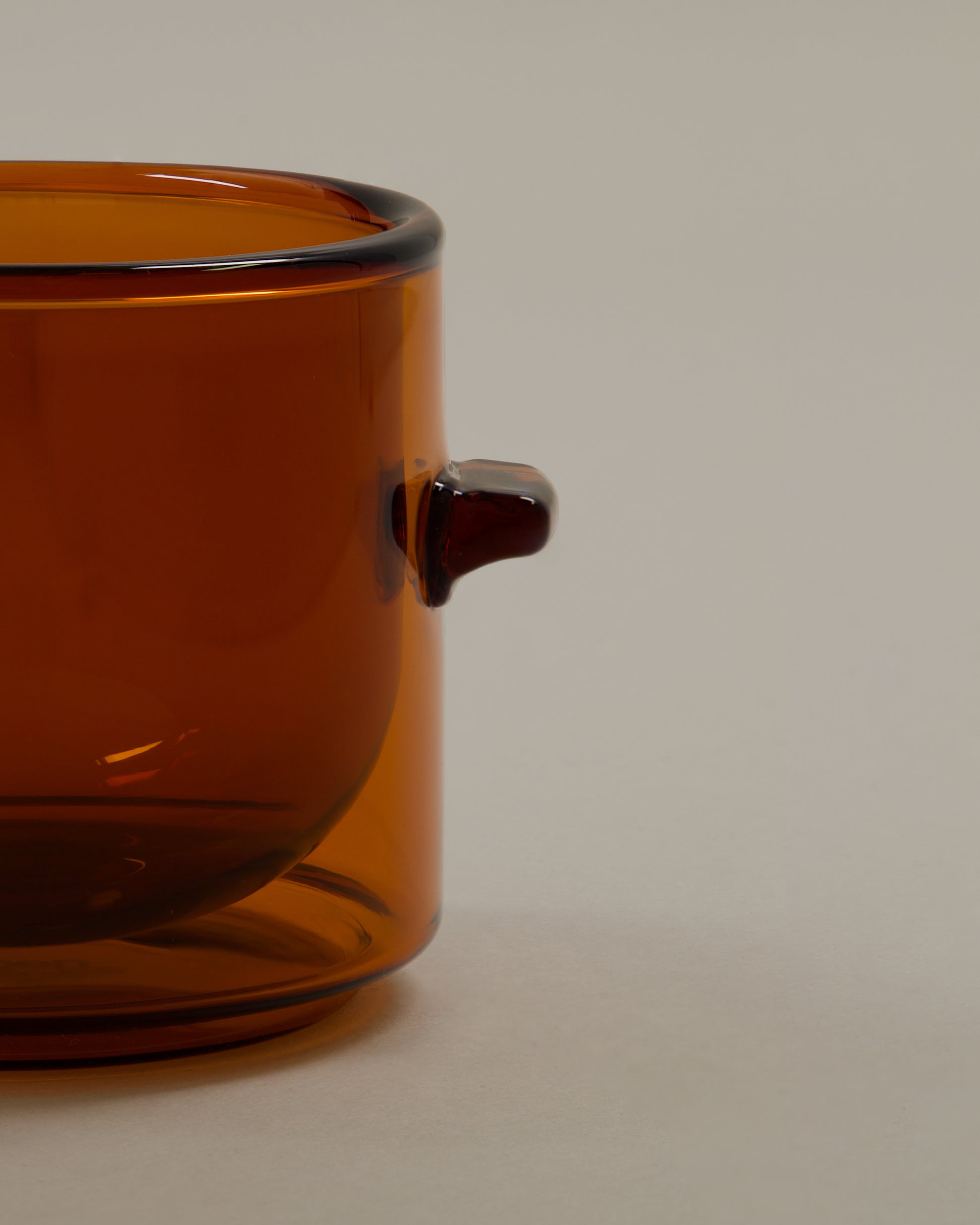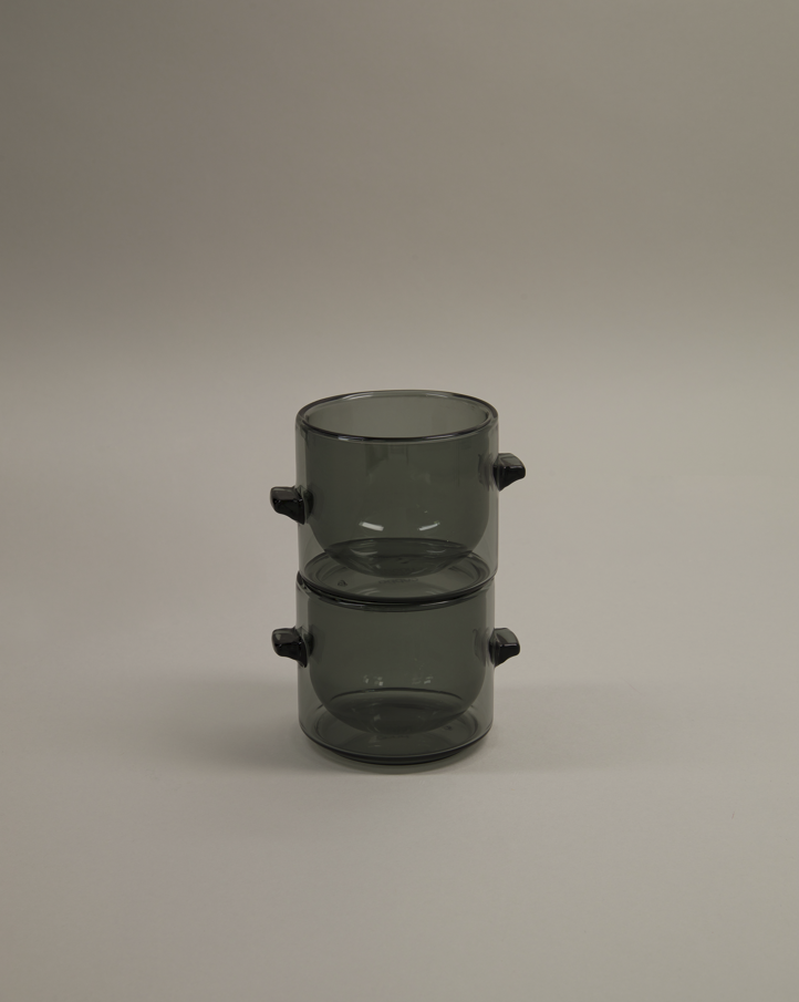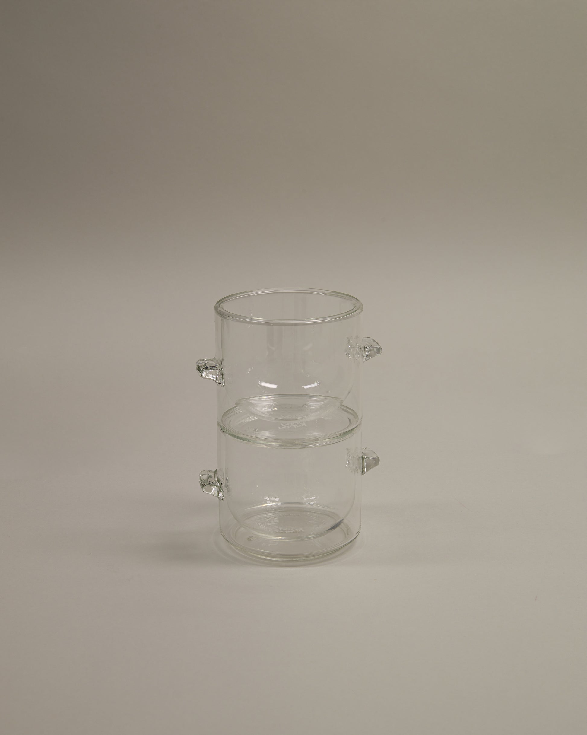 Crafted from durable borosilicate glass, this 6.6oz cup is designed for a perfect fit. The double-wall construction keeps your coffee warm while staying cool to the touch. Its hand-blown design includes two subtle glass nibs for an ergonomic, comfortable grip, offering a balanced experience without the need for a handle.